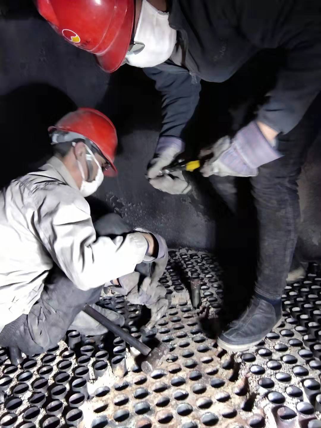 走進(jìn)檢修現(xiàn)場(chǎng),一群意氣風(fēng)發(fā),充滿活力的年輕人,拼搏的干勁激蕩在廠區(qū)每一個(gè)角落,攢足的勁頭如雨后春筍,倏倏地狂長(zhǎng)在檢修的舞臺(tái)上。從空預(yù)器狹窄的人孔門望去,彌漫的粉塵,不仔細(xì)看不清蹲著的是誰(shuí),伸手探去都能感覺(jué)到里面極其悶熱,探出頭來(lái)要水喝時(shí)才發(fā)現(xiàn)汗水和灰塵在他們的臉上變成了泥,妝出了現(xiàn)實(shí)版的“花臉”,引得百忙之中笑聲一片。