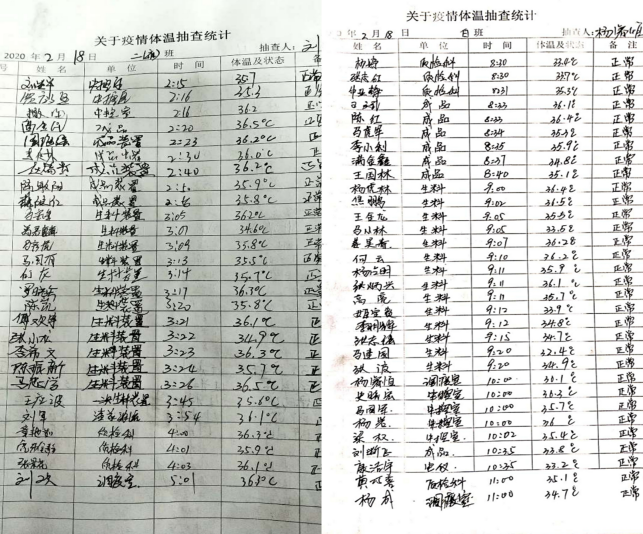 在公司北大門,他們對進出廠區(qū)職工及車輛登記,嚴格“疫情”防控工作。