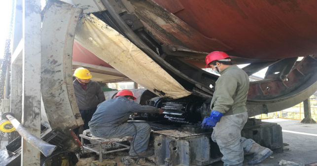 (6)烘干破減速機齒輪及軸承檢查,更換油封,聯(lián)軸器找正。破碎機內(nèi)部襯板檢查并緊固螺栓,破碎機內(nèi)雜物清理(未完成);