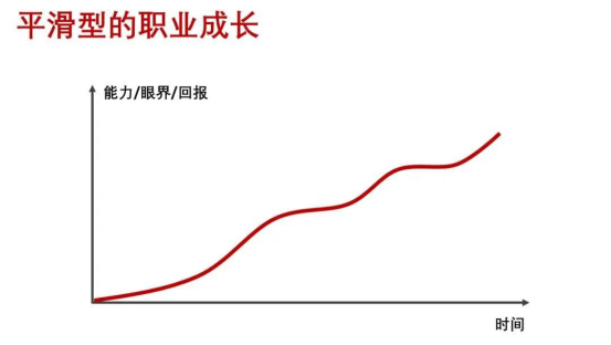 畫(huà)圖來(lái)顯示,就是下面這樣,你的職業(yè)成長(zhǎng)路徑應(yīng)該是一條非常平滑的曲線: