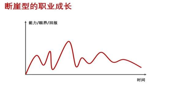 這一類(lèi)職業(yè)發(fā)展路徑,我稱之為“斷崖式”成長(zhǎng)(如下圖):