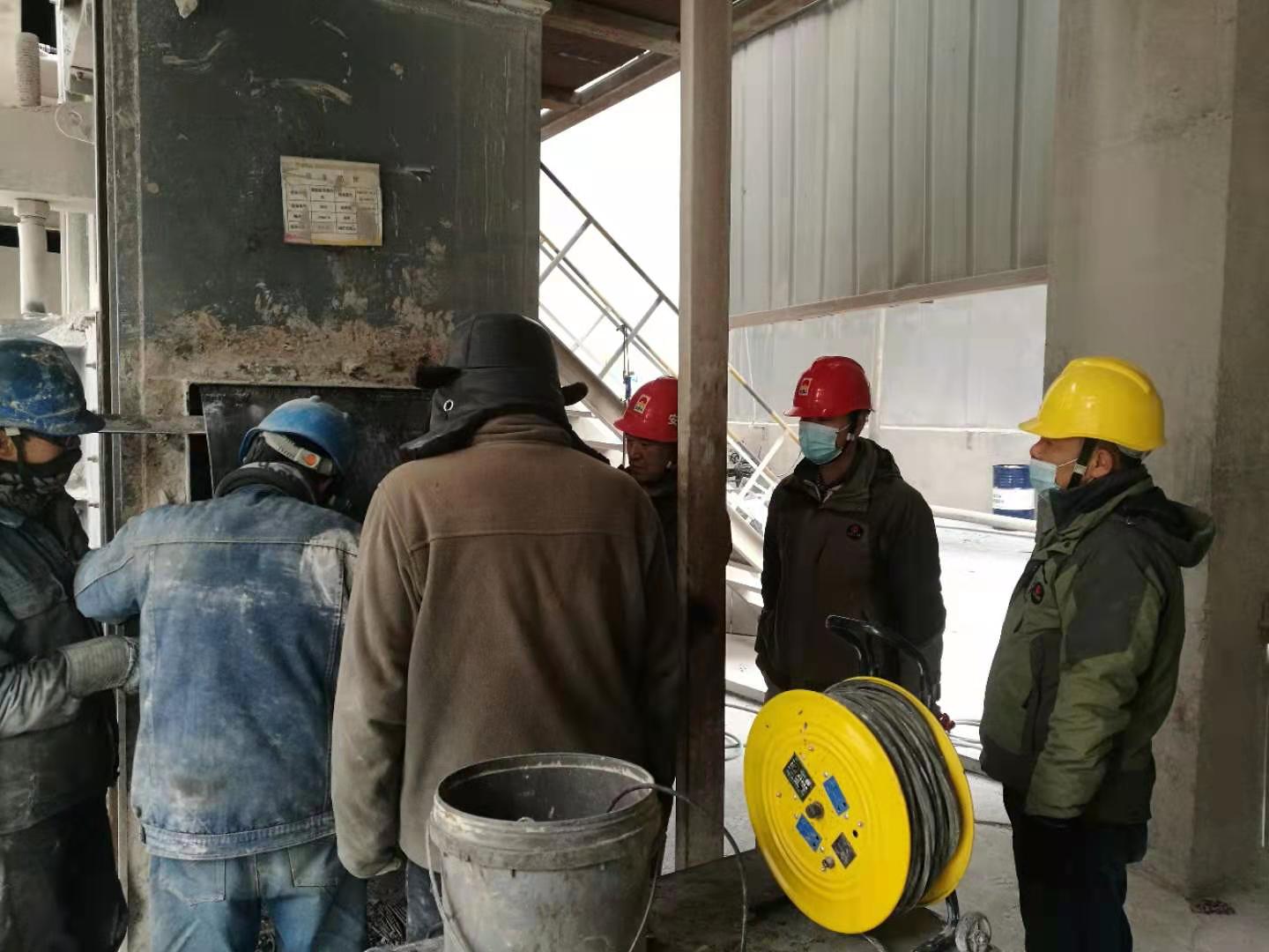 重點(diǎn)關(guān)鍵部位,如更換2026提升機(jī)鋼絲膠帶、落實(shí)提升機(jī)各個(gè)潤(rùn)滑部位之間的潤(rùn)滑、完成對(duì)2033離心風(fēng)機(jī)葉輪、托架、軸承的檢修更換、回轉(zhuǎn)窯、篦冷機(jī)、煤磨、烘干破、預(yù)熱器、2301、2323、2401提升機(jī)以及高溫風(fēng)機(jī)、回轉(zhuǎn)窯窯內(nèi)及燃燒器等這些重點(diǎn)關(guān)鍵部位檢修工作,均由公司總經(jīng)理吳紅衛(wèi)、副總經(jīng)理梁軍、曹愛新、安環(huán)生產(chǎn)科科長(zhǎng)張振忠、設(shè)備主管馬強(qiáng)分片包段、包點(diǎn)深入現(xiàn)場(chǎng)督導(dǎo)指導(dǎo)工作,全程白班中班職守巡查,檢修管理無(wú)休正常上班,掌控檢修全局。