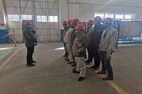 2月16日十萬(wàn)噸離子膜A槽陰極液總管漏點(diǎn)有增大趨勢(shì),根據(jù)停車(chē)檢修計(jì)劃,消除系統(tǒng)隱患,2月17日A 槽單槽停車(chē)更換北側(cè)陰極液總管。為了此次檢修工作順利進(jìn)行,裝置在2月16日下午組織召開(kāi)了常白班班組長(zhǎng)以上管理人員檢修動(dòng)員會(huì),會(huì)議重點(diǎn)強(qiáng)調(diào)檢修前系統(tǒng)置換、安全檢修、保證檢修質(zhì)量及檢修進(jìn)度等方面做了安排部署。