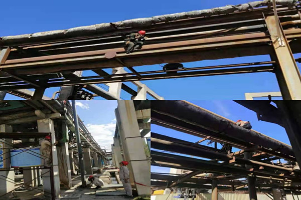 近期面對(duì)持續(xù)高溫天氣,加之裝置內(nèi)部工作任務(wù)也比較繁重,現(xiàn)場(chǎng)除了管架除銹刷漆任務(wù),還有框架支撐加固任務(wù),設(shè)備檢修任務(wù)等一系列工作都需要按時(shí)按計(jì)劃完成。但是如此高溫天氣,加之都還是登高動(dòng)火作業(yè),而且難度較大?晒ぷ鬟要繼續(xù),為此,裝置領(lǐng)導(dǎo)運(yùn)籌帷幄,安排有序,使得這些工作都在有序的開展當(dāng)中。裝置維修工以及日勤人員身先士卒,系好安全帶,拿好除銹刷漆工具,戴好防護(hù)用品登上四五米高的管架上方進(jìn)行作業(yè)。當(dāng)磨光機(jī)轉(zhuǎn)動(dòng)后飛濺起的鐵銹與灰塵,全部落到作業(yè)人員的身上和臉上;豆大的汗珠不停地從頭上掉落下來,砸到地面,如同一粒粒雨點(diǎn),描繪著一幅幅熱火朝天的勞動(dòng)景象。在高處刷漆的同事們,腳下的槽鋼曬得滾燙;既要保證刷漆的質(zhì)量,還要保證油漆不掉落,最重要的是要保證自身安全。當(dāng)他們從管架下來的那一刻,全身如同水洗一樣衣服全都濕透了,但他們沒有唉聲抱怨;每一個(gè)人抬頭看著除銹后刷完漆嶄新如初的管架,他們臉上都漏出開心的笑容;現(xiàn)場(chǎng)焊接立柱的人員,本來氣溫就高,還要受焊槍的炙烤,那是熱上加熱呀;但他們依然堅(jiān)持焊接完所有的立柱,他們這種愛崗敬業(yè)的精神讓我肅然起敬。