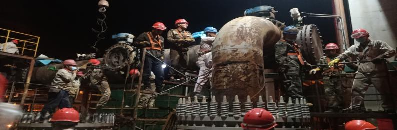 其他裝置檢修也是火熱朝天,來來往往,每個(gè)人都忙的不可開交,廢寢忘食,好像只要系統(tǒng)能夠順利開車,其他什么都不重要。此次停車檢修各裝置檢修內(nèi)容多,但是在每一級(jí)領(lǐng)導(dǎo)的安排下,每項(xiàng)檢修工作都在忙碌中進(jìn)行著。一系統(tǒng)順利開車后,所有人員未松一口氣,接著二系統(tǒng)停車檢修,有了一系統(tǒng)檢修的經(jīng)驗(yàn),二系統(tǒng)檢修順利開車。