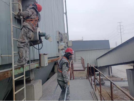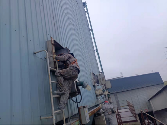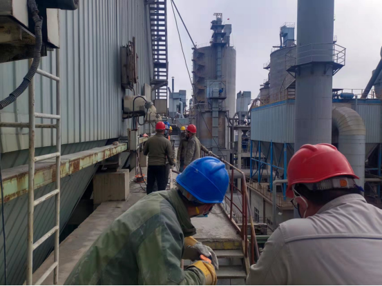 電收塵設備檢修現(xiàn)場,由于電收塵內(nèi)部極絲斷裂和灰斗積灰嚴重,導致電收塵各電場無電壓電流顯示。11月4日19時30分,回轉窯系統(tǒng)止料,計劃停車24小時,檢修窯尾電收塵器。除塵器檢修都是內(nèi)部操作,空間狹小,且都存在技術性,人員只能分頭進行,輪流進行更換極絲和清除積灰,用扳手、3米左右長的卸料竹竿敲打極絲,一道道工序,都存在著一定的難度,一方面靠著臂力、靠著準心,另一方面就是人工完成拆卸更換極絲,清除灰斗積灰,靠的時耐心和責任。通過檢査最終整修完成了更換11根極絲,清理了20個灰斗,圓滿完成此項電收塵器檢修任務。