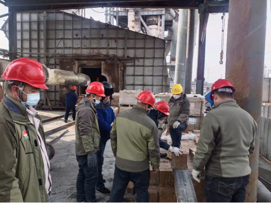 2月12日8:30—2月13日11:30分,在一片緊張有序的指揮中,展開了爭分奪秒的窯磚挖補工作。這里有公司領導、職能科室、質檢科及生產裝置全體員工,他們組成兩撥人員,實行24小時工作制。在現(xiàn)場,他們齊心協(xié)力、同舟共濟、相互打壓加氣,每一塊磚凝結著每一位員工心血。正當深夜,每個人堅持工作的最后一刻,從他們的表情中,可以看出,那種屏住呼吸、動作標準、目光堅定,無不詮釋著對工作的履職盡責。