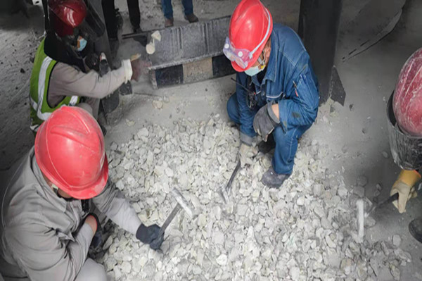 嚴(yán)格執(zhí)行白灰窯燒嘴看火及出灰探料管理機(jī)制;白灰窯崗位每班安排1-2個(gè)人,每小時(shí)使用鋼釬對(duì)四層燒嘴處沉料情況進(jìn)行確認(rèn),每次出灰必須檢查出灰機(jī)內(nèi)是否有結(jié)瘤。發(fā)現(xiàn)燒嘴處物料燒結(jié)不沉料時(shí),立即關(guān)小或關(guān)閉相對(duì)應(yīng)的煤氣閥門,等待觀察沉料情況。發(fā)現(xiàn)出灰機(jī)有結(jié)瘤無(wú)法正常出料時(shí),立即組織人員清理結(jié)瘤,避免物料煅燒超時(shí)燒結(jié)。