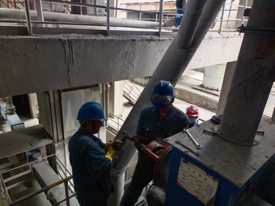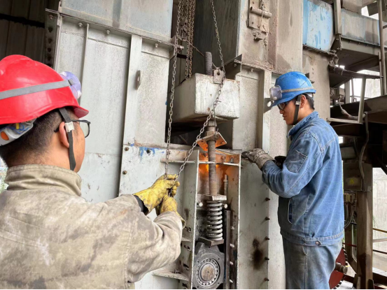 安裝技術(shù)要求高、安全風(fēng)險大的項目,總經(jīng)理吳紅衛(wèi)同志牽頭組織召開碰頭會,拿出技術(shù)方案,確保安裝精度、密封等滿足要求。特別是回轉(zhuǎn)窯大齒圈、烘干破旋風(fēng)筒補焊、窯頭電袋收塵器檢查、預(yù)熱器更換掛片、生料磨輥壓機(jī)堆焊等檢修項目,牽頭組織風(fēng)險設(shè)別,確保安全受控。對于檢修周期長及環(huán)境溫度要求高的檢修項目(工藝耐火磚及澆注料),合理安排施工時間,倒排施工節(jié)點時間,按計劃節(jié)點要求完成檢修任務(wù)。