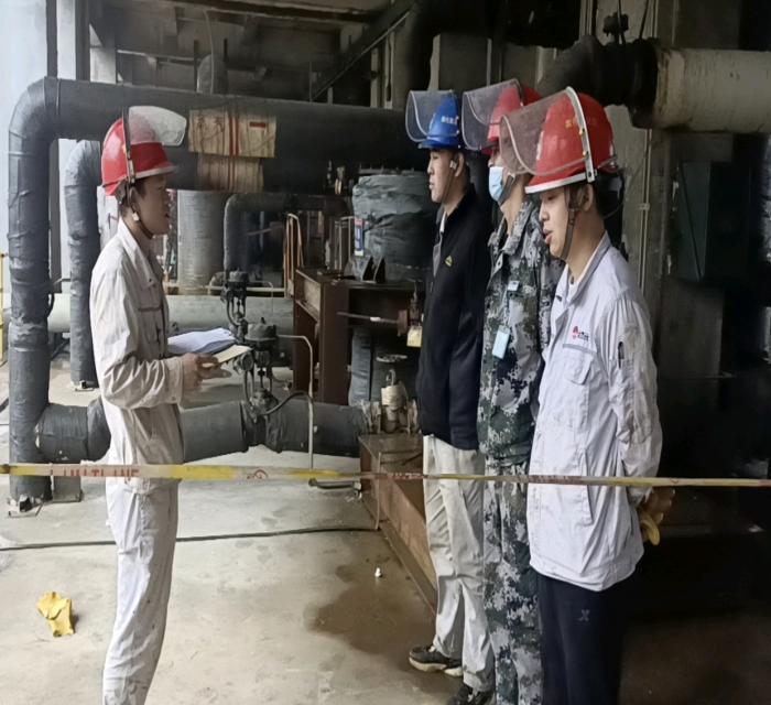 為了保證安全、優(yōu)質(zhì)、高效地完成任務(wù),在班長黃小龍的帶領(lǐng)下,進行零脫析再沸器管線拆除安全技術(shù)交底,裝置工藝技術(shù)員張?zhí)烊适俏覀兊谋O(jiān)護人,除此之外,單位領(lǐng)導(dǎo)更是親自到檢修一線指導(dǎo)工作,把安全關(guān),把質(zhì)量關(guān),隨時協(xié)調(diào)處理現(xiàn)場遇到的問題。