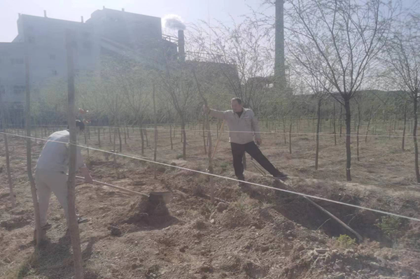 春光明媚的四月,萬物復蘇,春風吹綠了枝頭上的嫩芽,吹綠了地上的小草,大地上的每一個角落都充滿了春天的氣息。在這美好的季節(jié),公司全體領(lǐng)導干部和一線員工積極、主動參與植樹活動。植樹現(xiàn)場,大家干勁十足,挽起衣袖、拿起鐵鍬,為一棵棵新樹苗安置"新家"。今年種植新疆楊2200多棵、絲綿木650棵、大松樹近300棵、小榆樹30000棵,為新的春天又增添了一抹盎然的綠意?粗且黄约河H手種下的樹苗在微風中搖曳,無不露出幸福的笑容,在一張張的照片中和鏡頭里留下了自己美好的回憶。