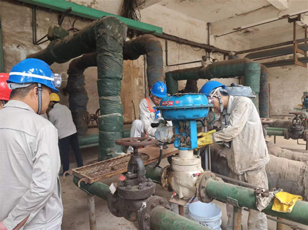 各裝置克服檢修點(diǎn)多面廣、檢修環(huán)境差、人員少等困難,精心組織、合理安排,使檢修工作有序推進(jìn),裝置各級(jí)管理人員以身作則與現(xiàn)場檢修人員共同奮戰(zhàn)在現(xiàn)場,無論是烈日的暴曬,還是黃沙的肆虐,都不能阻擋他們與維修工共檢修的決心。他們與現(xiàn)場檢修工奮戰(zhàn)在檢修現(xiàn)場的每一個(gè)角落,清油污、開人孔、拆法蘭、換閥門, 他們的身影無處不在,這種身先士卒的精神,輻射帶動(dòng)起全體檢修人員的干勁。在每個(gè)檢修現(xiàn)場,職工們都精神抖擻,全心全力投入檢修工作,為了趕進(jìn)度,他們自覺放棄午休時(shí)間,在檢修現(xiàn)場簡單吃點(diǎn)飯后,又繼續(xù)投入檢修中。夜幕降臨,廠區(qū)內(nèi)燈火輝煌,參與檢修的人員發(fā)揚(yáng)不怕苦、不怕累,連續(xù)作戰(zhàn)的精神戰(zhàn)斗在檢修現(xiàn)場。