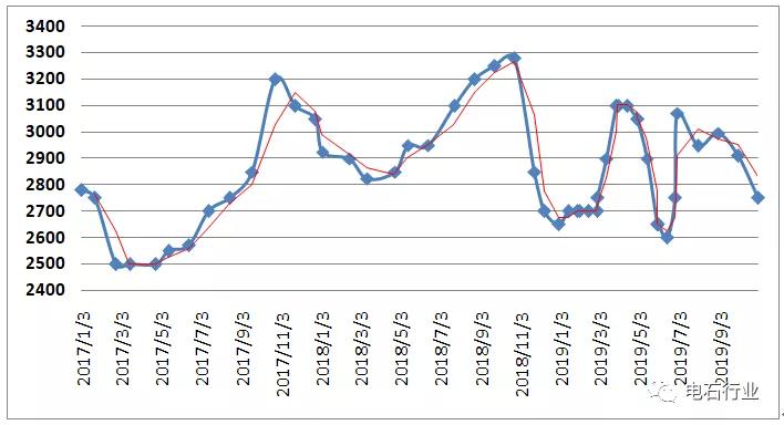 2017-2019年國(guó)內(nèi)電石整體價(jià)格走勢(shì)情況
