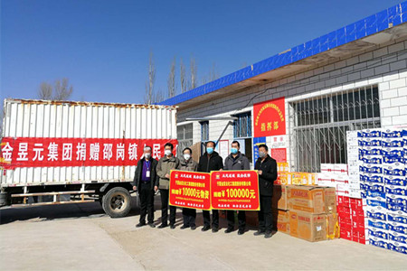 16日上午,春寒料峭,集團(tuán)公司黨委副書記兼工會主席王立軍、工會副主席李新、集團(tuán)公司辦公室主任朱公平等將10萬元捐款和價(jià)值1萬元物資捐贈給邵崗鎮(zhèn)政府時(shí),青銅峽市副市長張克寧、邵崗鎮(zhèn)鎮(zhèn)長梁才等同志向金昱元集團(tuán)表示感謝。