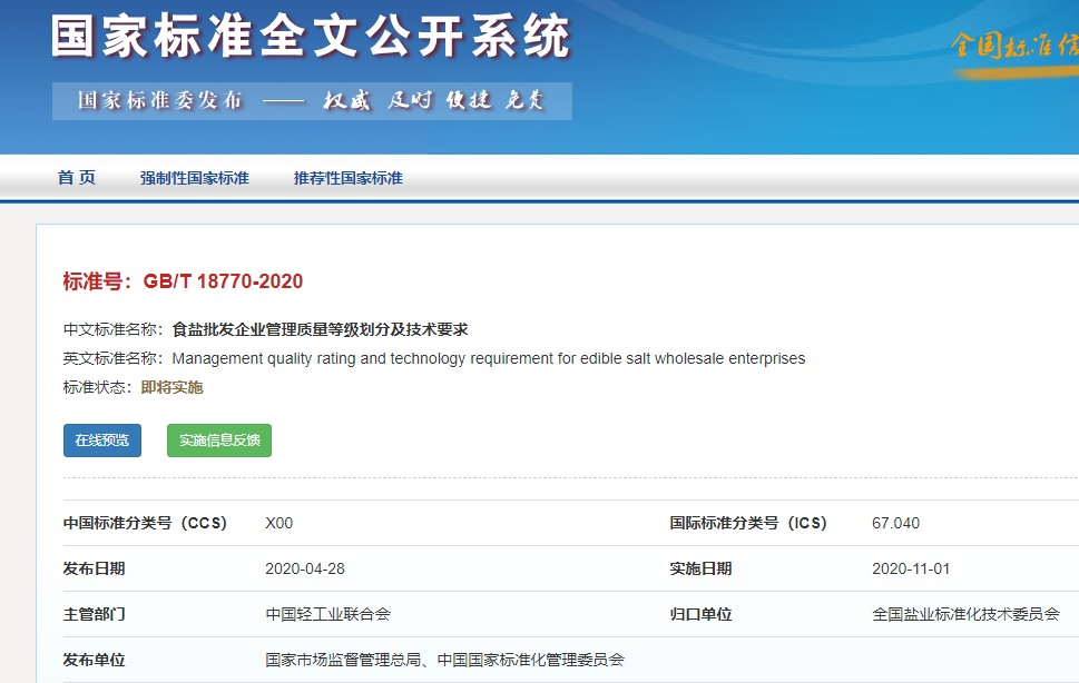 GB/T18770-2020標準今年11月1日實施在即,需要明白的是當由食鹽定點批發(fā)點企業(yè)自律實施,涉及標準與鹽改方案、部委《通知》及省鹽業(yè)主管部門實施文件抵觸的疑慮或問題,可以根據(jù)規(guī)范效力原則適用并按規(guī)定渠道反映。