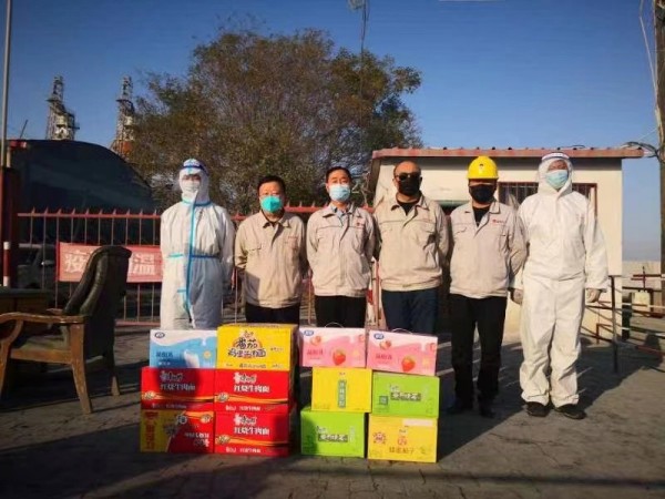 為提振士氣、鼓舞斗志,堅決打贏疫情防控阻擊戰(zhàn),10月31日、11月1日,寧夏金昱元化工集團股份有限公司總裁喬冠榮,監(jiān)事會主席郭復(fù)生,黨委副書記尚興,副總裁、固原片區(qū)總經(jīng)理王立軍,副總裁、青銅峽片區(qū)總經(jīng)理張立軍等領(lǐng)導(dǎo)組成慰問組,分別到固原片區(qū)和青銅峽片區(qū)各疫情防控卡點慰問奮戰(zhàn)在一線的防疫人員。