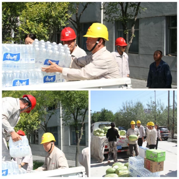 高溫如虎,關(guān)愛似海。集團公司黨委副書記尚興和其他領(lǐng)導(dǎo)把西瓜、飲料、茶葉等慰問品送到一線員工手中,送上集團公司黨委對一線員工的深切關(guān)愛,員工們對集團公司黨委的深切關(guān)懷深表感謝,戰(zhàn)高溫、斗酷暑、保安全的信心倍增。