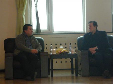 自治區(qū)國稅局副局長陳連書(右)與金昱元公司董事長代良云(左)親切交談