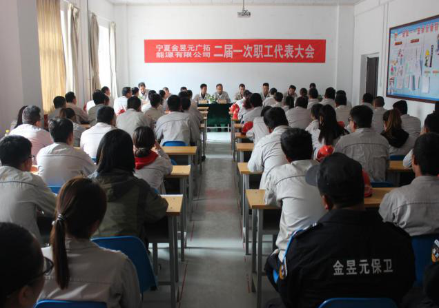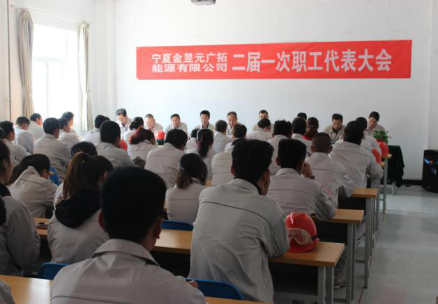 2018年10月16日下午14時(shí),寧夏金昱元廣拓能源公司二屆一次職工代表大會(huì)在化工公司調(diào)度室召開。會(huì)議由黨總支書記副總經(jīng)理馬建東主持。集團(tuán)公司黨委副書記、工會(huì)主席王立軍及各子公司、職能部室職工代表共108人參加了會(huì)議。