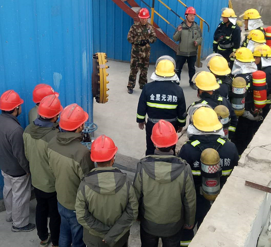 演練結(jié)束后由鹽業(yè)公司安全管理人員組織園區(qū)消防中隊與廣拓能源保衛(wèi)科警消班對鹽業(yè)公司油庫內(nèi)部布局、消防設(shè)施、設(shè)備及工藝管路、油庫儲量等進(jìn)行參觀、講解,同時與園區(qū)消防中隊人員就鹽業(yè)公司消防措施進(jìn)行交流。