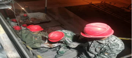 公司總經(jīng)理吳紅衛(wèi)、副總經(jīng)理梁軍分別在回轉(zhuǎn)窯現(xiàn)場(chǎng),對(duì)回轉(zhuǎn)窯耐火磚挖補(bǔ)進(jìn)行指導(dǎo),對(duì)挖補(bǔ)工序、清理狀況和人員搭配進(jìn)行調(diào)整和部署,與此同時(shí),經(jīng)過連續(xù)14個(gè)小時(shí)的加班加點(diǎn),16日晚23時(shí)40分許回轉(zhuǎn)窯耐火磚挖補(bǔ)順利竣工;17日凌晨3時(shí)許回轉(zhuǎn)窯窯口澆筑料填補(bǔ)完工,17日下午17時(shí)回轉(zhuǎn)窯窯尾預(yù)熱器檢維修及密封完工,17日下午17時(shí)30分回轉(zhuǎn)窯點(diǎn)火烘窯,18日上午7時(shí)10分正式投料,恢復(fù)生產(chǎn)。至此,回轉(zhuǎn)窯從停窯降溫到檢維修完成,比預(yù)計(jì)時(shí)間提前9個(gè)小時(shí)。