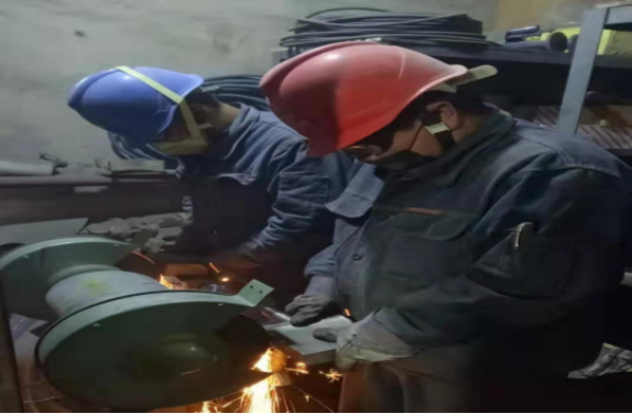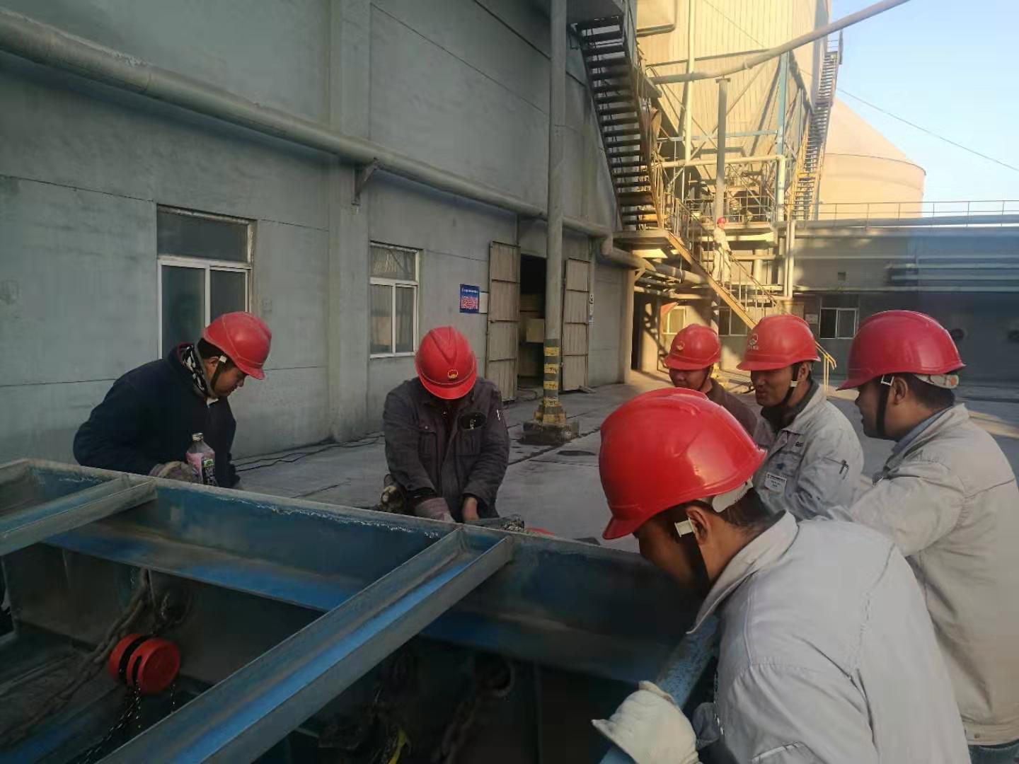 一、成品裝置長黃勃強帶領(lǐng)維修工對均化庫底空氣斜槽技改,認(rèn)真辦理受限空間作業(yè)票證。指導(dǎo)維修人員計算材料,核對圖紙,然后利用簡單的工具就地進(jìn)行比劃!