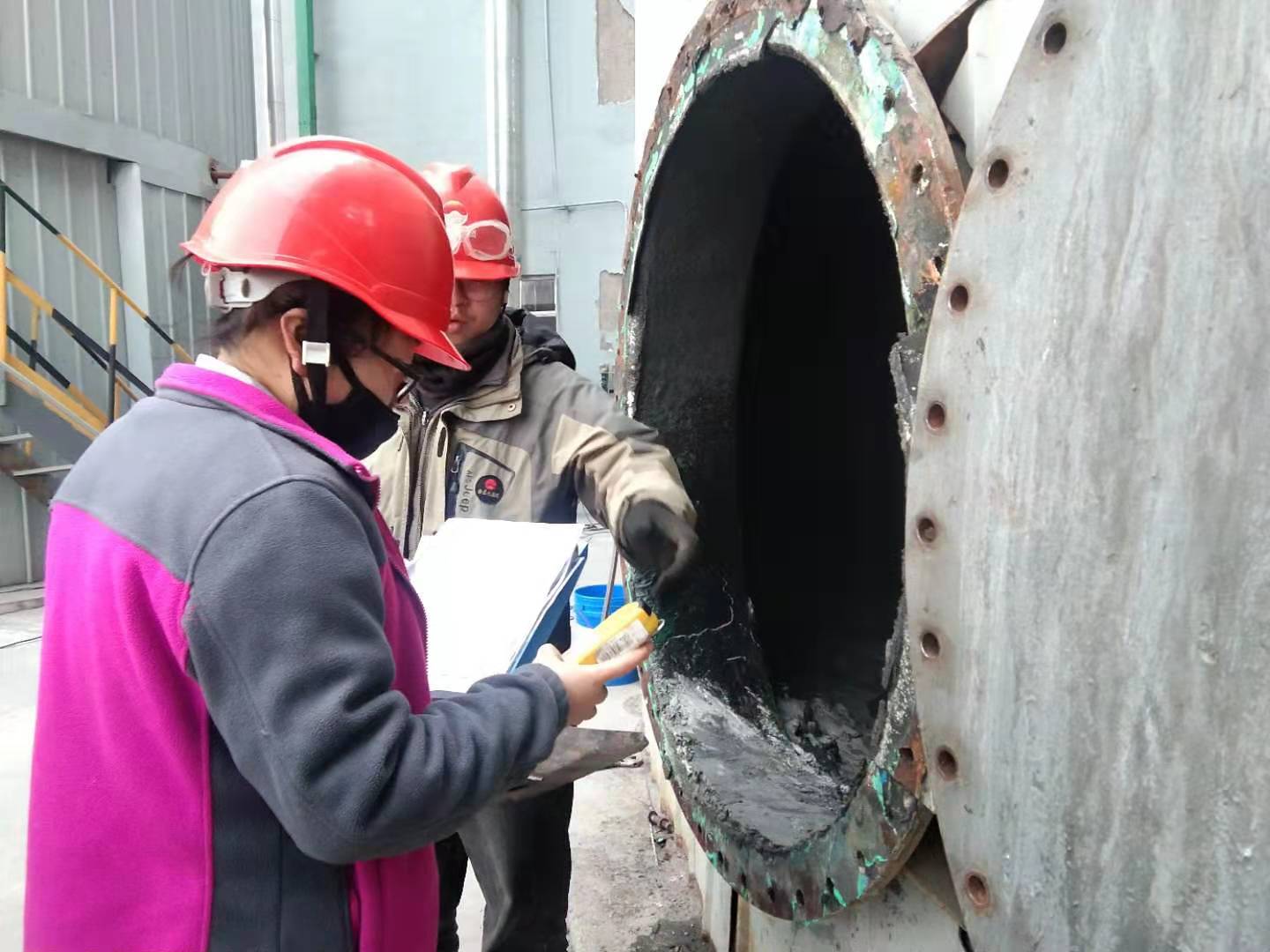而另一邊,脫硫塔底積料清理卻迎上了這寒冬的冷意,塔里潮濕又冷,光線又黑暗,與塔外的氣候可以說(shuō)是“有過(guò)之而無(wú)不及”。塔底的積水沒(méi)過(guò)膝蓋,從外向里望去就像個(gè)黑乎乎的“水缸”,只見(jiàn)我們檢修人員二話不說(shuō)穿上雨鞋,冒著塔里零下五六度的低溫鉆進(jìn)去開(kāi)始工作,塔內(nèi)淤泥被他們用鐵鍬不斷鏟向外面,從塔內(nèi)出來(lái)的時(shí)候衣服已經(jīng)濕了半截凍得瑟瑟發(fā)抖,可是沒(méi)有半點(diǎn)怨言,而主人翁的能動(dòng)性和著齊心協(xié)力描繪出了冬日里一道充滿暖意的風(fēng)景!