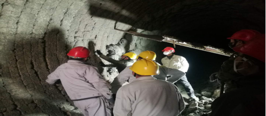 窯磚緊固。加塞,在轟鳴的風鎬聲中,夾雜著交替起落的敲擊聲,工友們,正頂著滿面的塵灰完成作業(yè)。