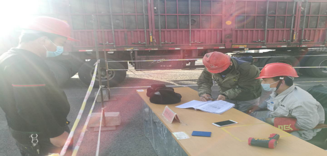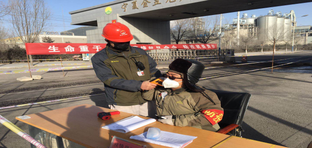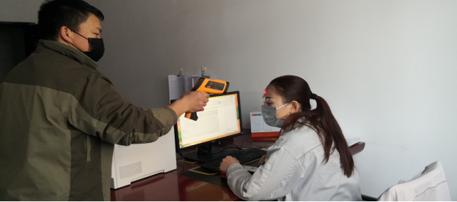 在園區(qū)南門,今日截止下午17時(shí)整,他們檢測、消毒、登記車輛78輛,人員100人,車輛正常,人員體溫均在正常范圍。