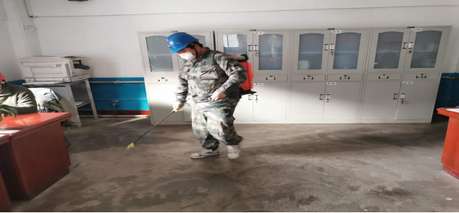 在崗位辦公室消毒。