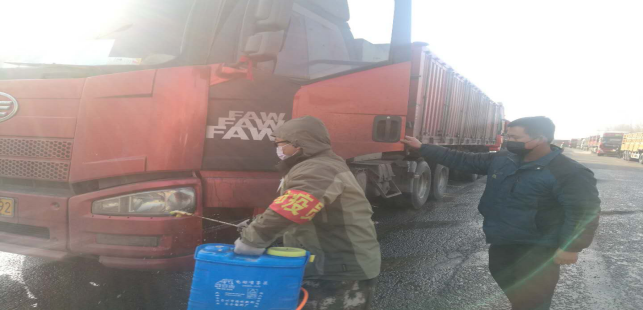 在園區(qū)南門,今日截止下午17時整,他們檢測、消毒、登記車輛92輛(其中水泥19車輛,熟料9車輛,2輛氧氣配送車),人員98人信息,體溫均在正常范圍,另外隨行26人體溫均在正常范圍。