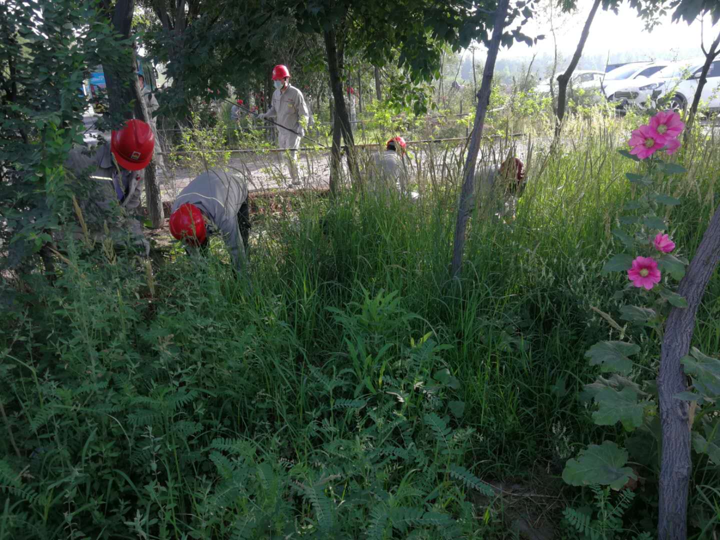 七月二日早上八點(diǎn)整,資源再生公司組織所有共產(chǎn)黨員及日勤人員在公司內(nèi)開展黨員志愿服務(wù)活動。主要對公司東側(cè)馬路綠化帶內(nèi)雜草進(jìn)行處理。清晨的陽光透過樹的縫隙溫柔的灑在所有人的身上,帶著露水的雜草在所有人的努力下被連根拔起。一把一把,一片一片,平整的草地露出了原來的模樣。隨著太陽的西移,陽光熱烈了起來,溫度也隨之升高,所有人的臉上出現(xiàn)了汗珠,可大家絲毫沒有懈怠,直到把那一片的草全部除完,才收工回崗位工作。