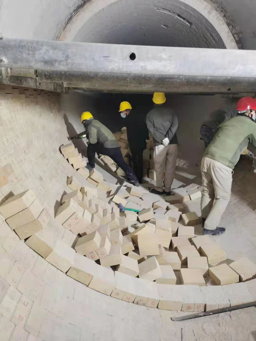 入窯鉸刀更換結(jié)束后,幾名維修工再一次細(xì)致的對(duì)鉸刀附屬設(shè)備進(jìn)行檢查,確;剞D(zhuǎn)窯開啟后入窯鉸刀能夠長(zhǎng)周期穩(wěn)定運(yùn)行。回轉(zhuǎn)窯內(nèi),平時(shí)的崗位巡檢操作工變身砌磚師傅,對(duì)窯磚進(jìn)行砌筑。大家配合默契,像極了從事砌磚行業(yè)多年的老師傅。窯頭平臺(tái)上,頂著寒風(fēng)搬磚的是各裝置協(xié)調(diào)的員工。一方有難八方支援,不管回轉(zhuǎn)窯還是電石爐,都是資源再生公司的設(shè)備。哪兒檢修,其他裝置馬上協(xié)調(diào)人員配合。一次檢修就是一次考驗(yàn),不僅要保安全保進(jìn)度,還要保證檢修質(zhì)量。各級(jí)管理人員在保證安全的前提下對(duì)窯磚砌筑質(zhì)量進(jìn)行檢查,確保檢修質(zhì)量。