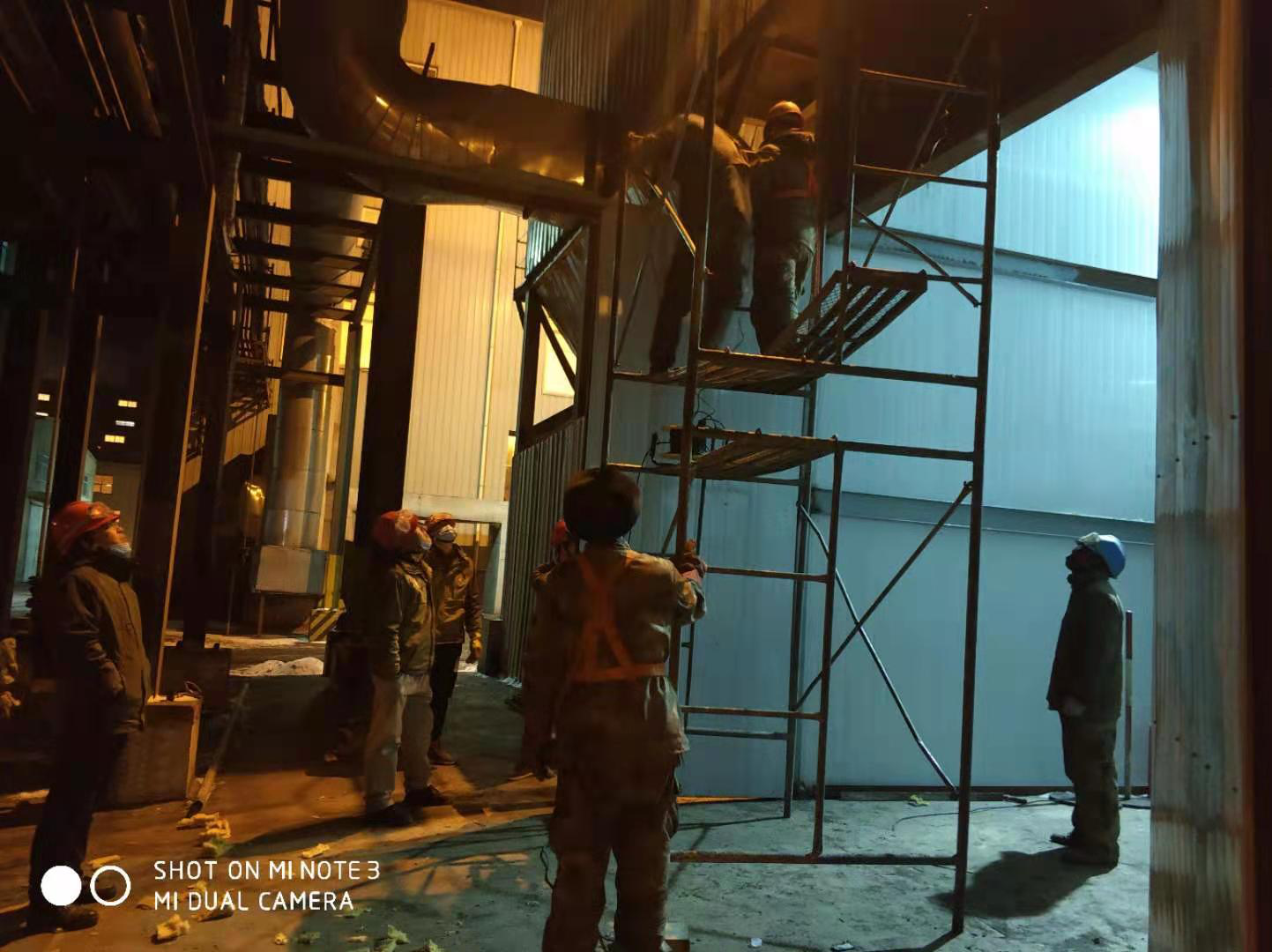 2021年1月8日,是固堿裝置檢修熔鹽爐及安裝脫硝設備的日子,一大早,檢修現(xiàn)場現(xiàn)場,就看見他們忙碌的身影。