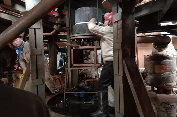 燈頭是蒸汽爐最核心的部件,它就如同蒸汽爐的“心臟”,保證著蒸汽爐的安全平穩(wěn)運行。由于燈頭是石英材質,不能有任何碰撞。有著二十年檢修工作經(jīng)驗沈培銀老師傅,像一名“將軍”一樣,指揮著大家拆燈頭,滿身的油污,像軍功章一樣掛在他的胸前。只見他拿來三根全絲螺桿,均勻地固定在燈頭支座上,隨著三只螺母的松動,燈頭就開始慢慢地向下移動,為了保證燈頭的平穩(wěn)下落,三個人必須同時松動螺母,這需要高度默契地配合。 沈培銀老師傅不緊不慢地松動著螺母,并時刻提醒著其他兩個人的進度。汗水早已濕透了三人的衣服,裹挾著污漬的汗水不停地順著他們的臉頰滴落。愛開玩笑的同事,不失時機地說個笑話,逗得大家哈哈大笑,身上的疲憊感頓時消減幾分。