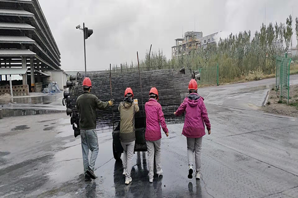 細雨中,早到的操作工將成品庫西側(cè)的所有舊龍骨清理至機修廠房前面空地處,一千多條龍骨,在他們在小小的板車上一車一車的拉運完,防砸鞋和褲管都已濕透,但看著清理完整齊的現(xiàn)場,所有的辛苦頓時煙消云散,掛滿灰塵的臉上洋溢出笑容。