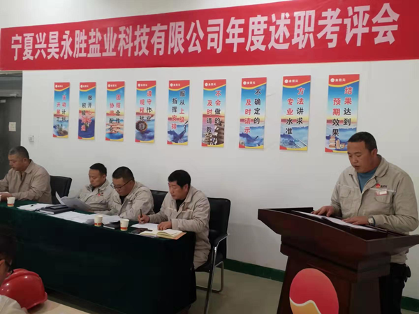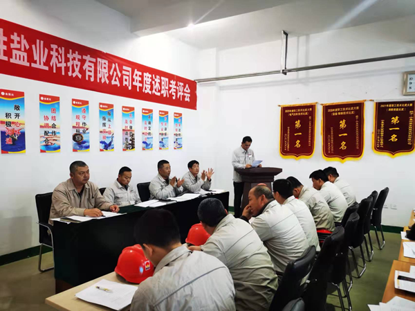 2021年12月2日下午,寧夏興昊永勝鹽業(yè)科技有限公司組織召開2021年度管理人員述職考評會,聽取管理人員履職情況、管理目標和重點工作完成情況、分管工作和本人履職中存在問題及下一年的工作思路。