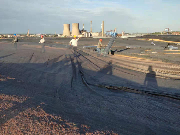由于公司原料堆場(chǎng)原料使用造成的部分土地裸露,造成揚(yáng)塵污染,治風(fēng)沙、阻揚(yáng)塵這項(xiàng)工作迫在眉睫;八月秋深,狂風(fēng)怒號(hào),風(fēng)卷走了手中的防塵網(wǎng),天空烏云黑的像墨天色陰沉迷蒙,空曠的型砂、粘土堆場(chǎng)風(fēng)呼呼的吹著,任憑它的怎么肆虐卻擊退不了職工們工作的熱情,瞧他們單膝蓋在潮濕的泥土上細(xì)心的用鐵絲鏈接著每個(gè)接口。男職工展現(xiàn)大力水手的魅力,兩人一卷,一人一卷有序的擺放在裸露的土地中央,女同事也不甘示弱拆開整卷防塵網(wǎng)整齊的鋪在砂石頂部,大家喊著整齊的口號(hào),經(jīng)過一早上不懈努力,就將整個(gè)原料場(chǎng)地覆蓋完畢。抑制滿天風(fēng)沙的場(chǎng)景,也保存了大量的原料。
