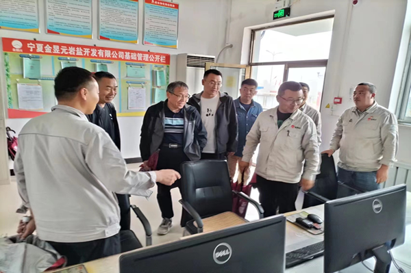 2022年8月25日上午,自治區(qū)綠色礦山建設考評驗收小組組長朱平,帶領綠色礦山建設考評驗收小組,在原州區(qū)自然資源局礦產科張主任的陪同下,蒞臨金昱元巖鹽開發(fā)公司開展綠色礦山建設第一次考評驗收工作。公司總經理尚繼榮、副經理莊濤及采鹵副總工程師溫艷廷等陪同檢查。