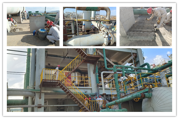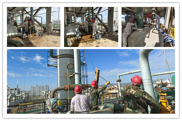 檢修第一天,各崗位管線旁和設(shè)備前隨處可見檢修人員忙碌的身影,全體員工以飽滿的熱情和昂揚(yáng)的斗志全身心投入到檢修工作中。在檢修中錘煉了意志、增長(zhǎng)了才干、提升了能力。本次檢修主要涵蓋了現(xiàn)場(chǎng)設(shè)備閥門的維護(hù)保養(yǎng)以及安全運(yùn)行檢查,精餾高低塔清理,干燥流化床清洗等項(xiàng)目。