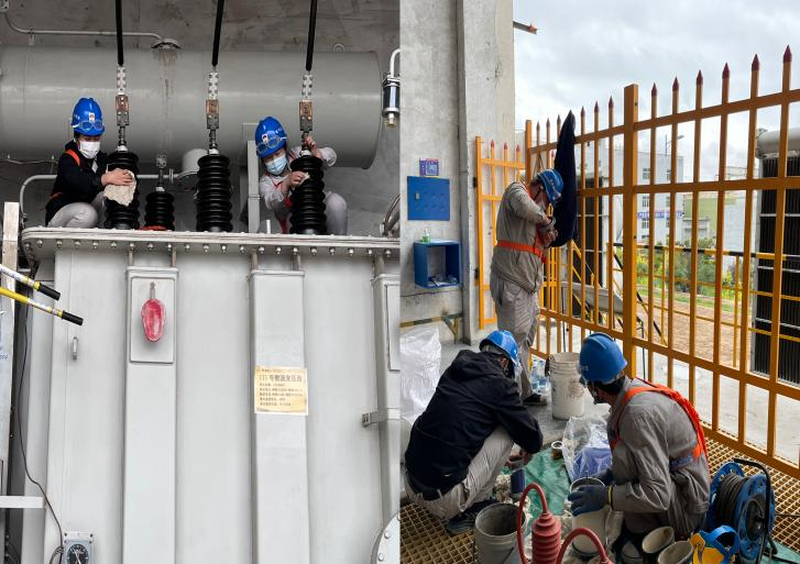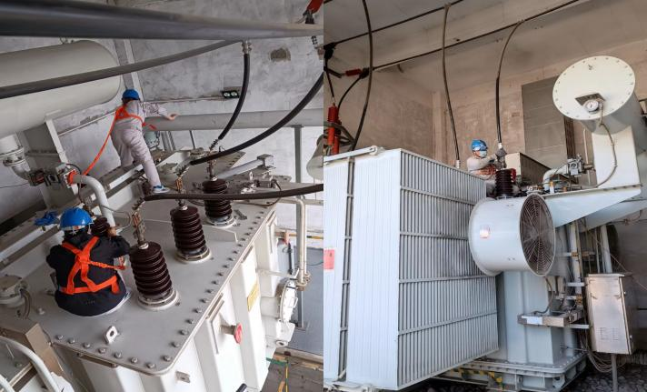 一切準(zhǔn)備工作就緒,首先整流現(xiàn)場(chǎng)對(duì)變壓器進(jìn)行放電、驗(yàn)電掛接地線,螺絲緊固除塵及硅膠更換,俗話說(shuō)的好,誰(shuí)說(shuō)女子不如男,這次顯然不同的是,由女生進(jìn)行此次變壓器的檢修工作,雖然辛苦,但這是鍛煉我們的機(jī)會(huì),是學(xué)習(xí)增長(zhǎng)知識(shí)的機(jī)會(huì),因此再苦再累也必須堅(jiān)持。