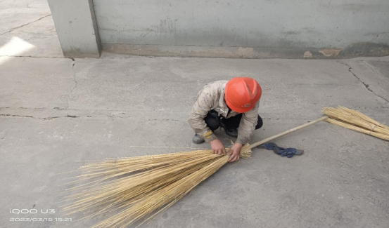 他,一個平時不善言語的人,正在專心致志地用一根鐵絲修復(fù)芨芨草大掃帚。掃帚的上面已經(jīng)散開,掃地時聚攏不到一起,并且會大量折折散落,但在他的手中已經(jīng)變成了一把緊湊的實用工具。我看著他剛想說什么,他卻笑著說:“你看咋樣?這樣還能用很久呢”。