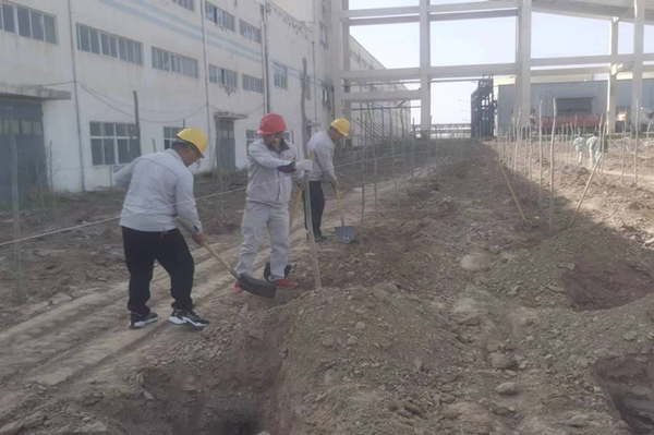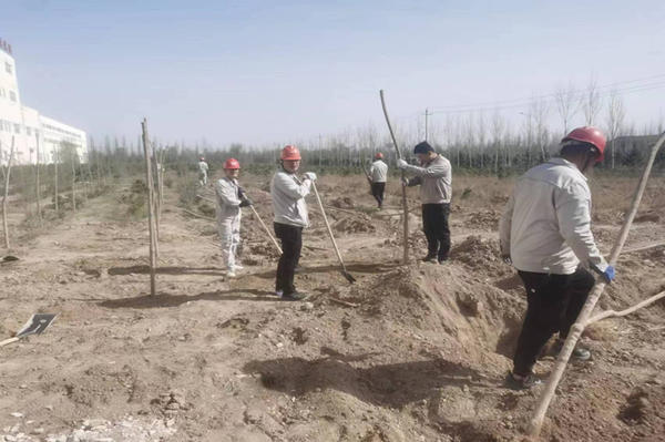 春光明媚的四月,萬物復(fù)蘇,春風(fēng)吹綠了枝頭上的嫩芽,吹綠了地上的小草,大地上的每一個角落都充滿了春天的氣息。在這美好的季節(jié),公司全體領(lǐng)導(dǎo)干部和一線員工積極、主動參與植樹活動。植樹現(xiàn)場,大家干勁十足,挽起衣袖、拿起鐵鍬,為一棵棵新樹苗安置"新家"。今年種植新疆楊2200多棵、絲綿木650棵、大松樹近300棵、小榆樹30000棵,為新的春天又增添了一抹盎然的綠意?粗且黄约河H手種下的樹苗在微風(fēng)中搖曳,無不露出幸福的笑容,在一張張的照片中和鏡頭里留下了自己美好的回憶。