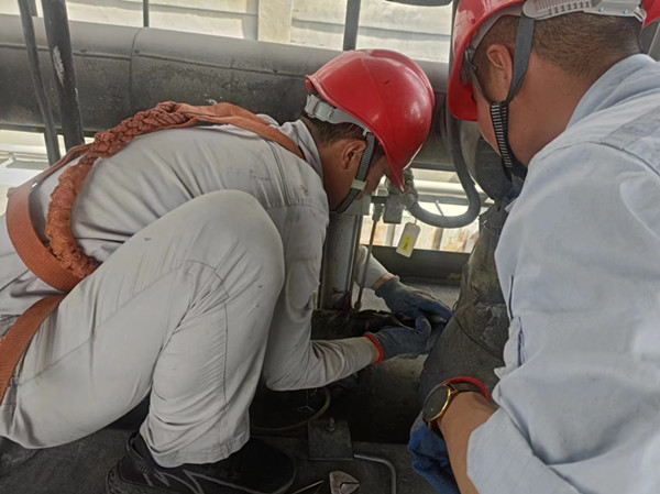 各個點檢修負責人在現場指揮著,檢修現場氣氛熱烈,大家干得熱火朝天、干勁十足、全身心地投入到檢修工作中。