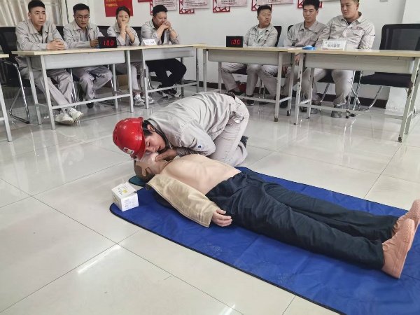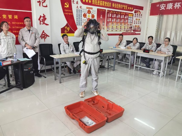 比賽現(xiàn)場,參賽隊員們個個精神抖擻、斗志昂揚!靶姆螐吞K操作”“正壓式空氣呼吸器穿戴”兩個項目,選手們爭分奪秒?yún)s有條不紊:檢查患者意識和呼吸、檢查氣瓶壓力、調(diào)整背帶松緊、佩戴面罩并測試氣密性……一套流程行云流水,展現(xiàn)出扎實的技能功底與高度的安全意識;顒蝇F(xiàn)場,公司安全總監(jiān)鐵旭東、安全主管何寧、海什全程監(jiān)督評分,并針對操作細節(jié)進行實時監(jiān)控,將比賽轉化為安全培訓課堂,達到競賽和培訓相結合。參賽職工紛紛表示,通過比武不僅提升了應急處置能力,更深刻體會到規(guī)范操作的重要性。