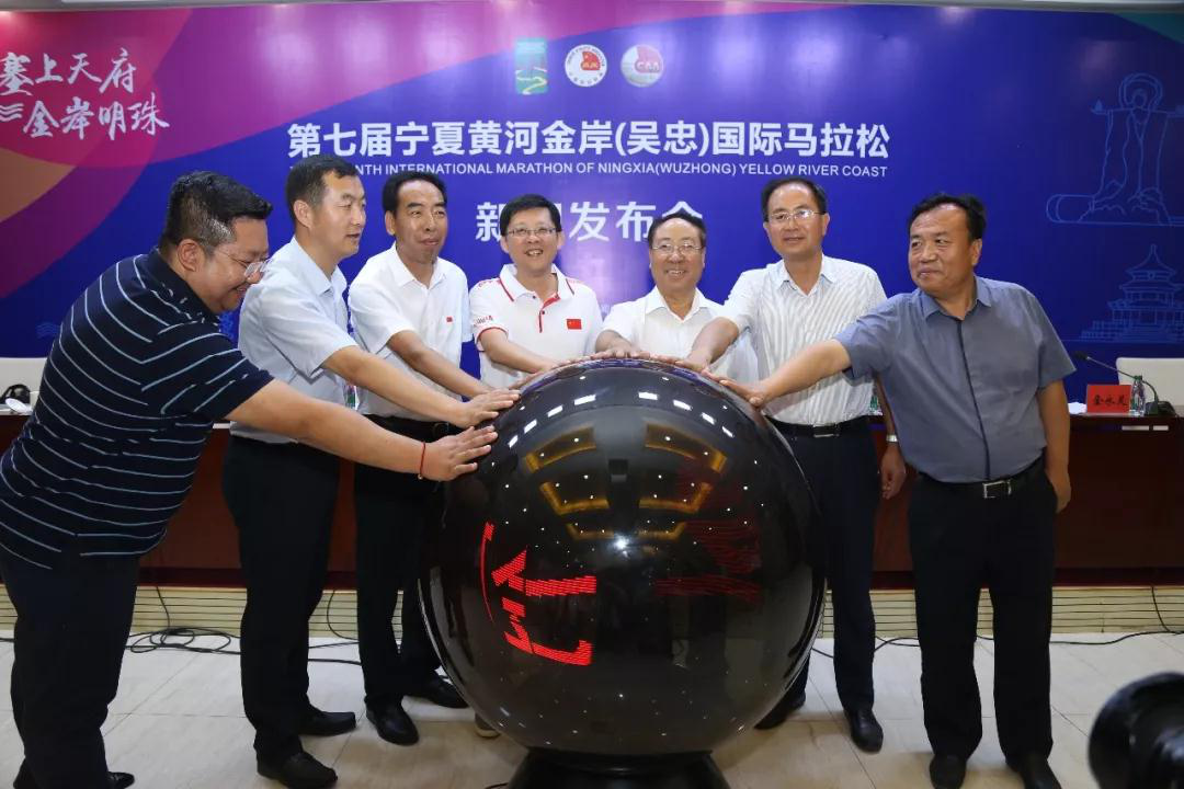(與會領導共同啟動“第七屆寧夏黃河金岸(吳忠)國際馬拉松”盛會)