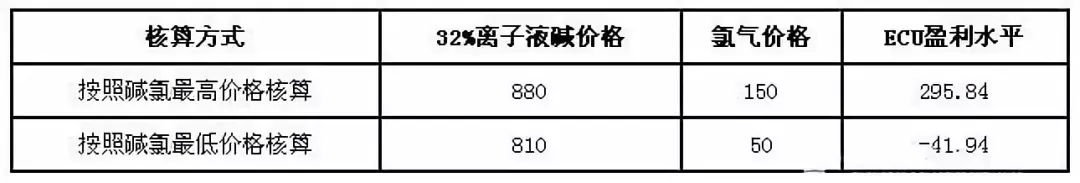 按照堿氯最低價格核算,無自備電廠的氯堿企業(yè)ECU平均虧損41.94元/噸,而按照最高價格核算,無自備電廠的氯堿企業(yè)盈利295.84元/噸。