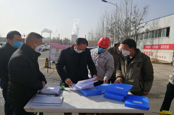 金永靈市長(zhǎng)按常規(guī)程序進(jìn)行測(cè)量體溫和登記信息,并翻閱出入大門(mén)人員信息登記臺(tái)賬。他詳細(xì)了解了集團(tuán)公司疫情防控工作,總裁葉森和黨委副書(shū)記兼工會(huì)主席王立軍逐一回答。