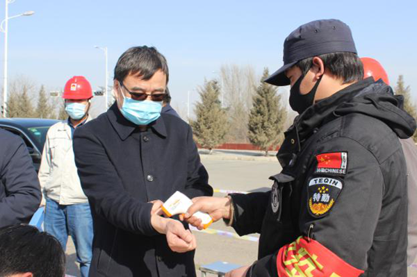 2 月 19 日下午,自治區(qū)工信廳副廳長朱洪軍一行,在固原市開發(fā)區(qū)管委會副書記張恭昌、工信局副局長王宏志的陪同下,蒞臨金昱元集團固原片區(qū)檢查疫情防控工作,并了解企業(yè)受疫情影響存在的問題。集團公司常務(wù)副總裁陳文泓、副總裁兼固原片區(qū)總經(jīng)理喬冠榮、片區(qū)副總經(jīng)理馬建東陪同。