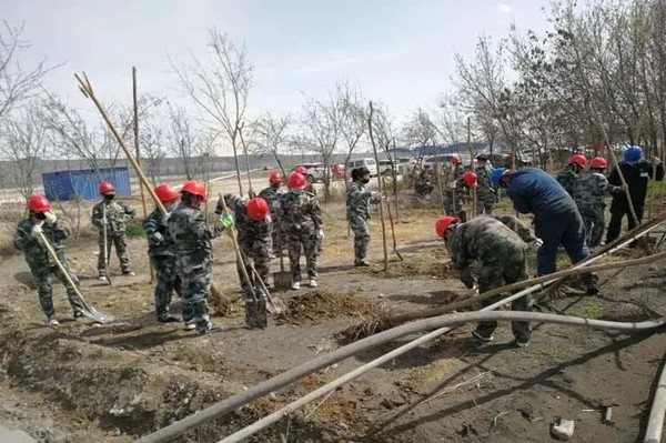 參加植樹的職工一到植樹現(xiàn)場,便投入到忙碌的工作當(dāng)中,大家爭先恐后揮鍬挖土、放苗回填,現(xiàn)場一片繁忙景象。